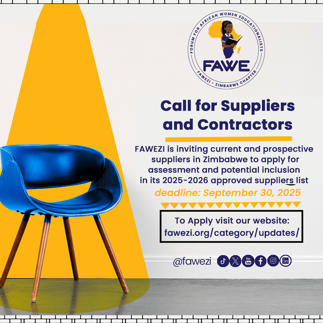 Forum for African Women Educationalists Zimbabwe (FAWEZI) Deadline: 30 September 2025 FAWEZI is inviting current and prospective suppliers in Zimbabwe to apply for assessment and potential inclusion in its...